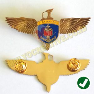 Mulyo Creative sedia, jual dan terima order pembuatan macam-macam perlengkapan dan aksesoris dengan kualitas terbaik dan harga yang murah. Salah satunya adalah Wing Lencana Gita Bahari Marching Band Desain Custom yang terbuat dari bahan plat logam kuningan berkualitas.