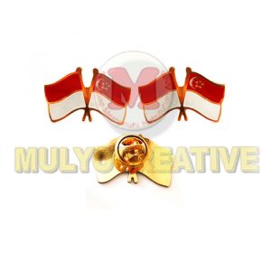 Jual Crossflag Pin Indonesia Singapore Bahan Logam Kuningan – Lencana Bendera Kerjasama Antar Bangsa Indonesia Singapura Harga Murah