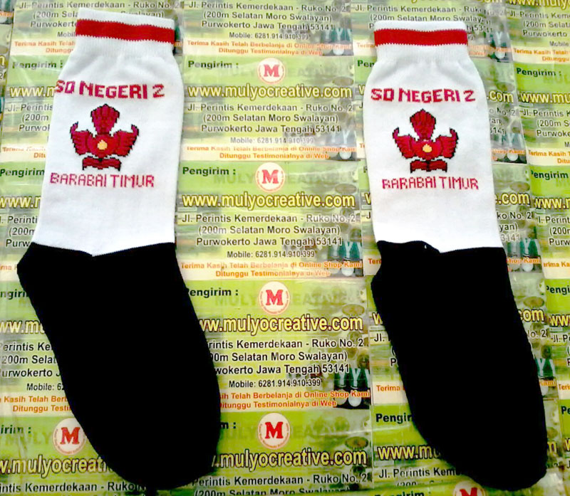 Mulyocreative sedia kaos kaki sekolah dengan logo sekolah, kaos kaki model rajut bukan bordir, jadi hasil lebih halus. Bila anda cari kaos kaki logo sekolah dengan harga murah dan desain sesuai keinginan anda atau nama dan logo sekolah silahkan pesan kaos kaki logo sekolah tersebut dengan menghubungi kontak kami.