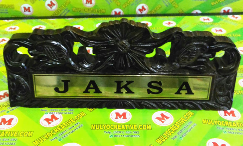 Papan Nama mEja dari Kayu Ukir untuk “Jaksa”