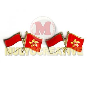 Jual Lencana Pin Bendera – Crossflag Pin Indonesia Hongkong Bahan Logam Kuningan