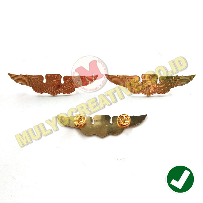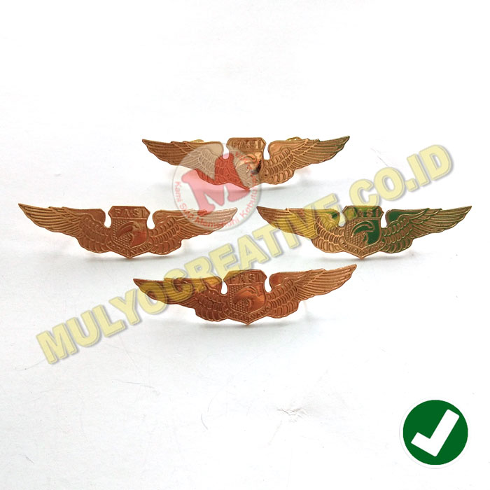 Mulyo Creative sedia, jual dan terima order pembuatan Wing Logo FASI Paralayang / Brevet Federasi Aero Sport Indonesia Paralayang yang dibuat dengan teknik pengolahan Etsa logam kuningan sehingga lebih awet dan tampak eksklusif.